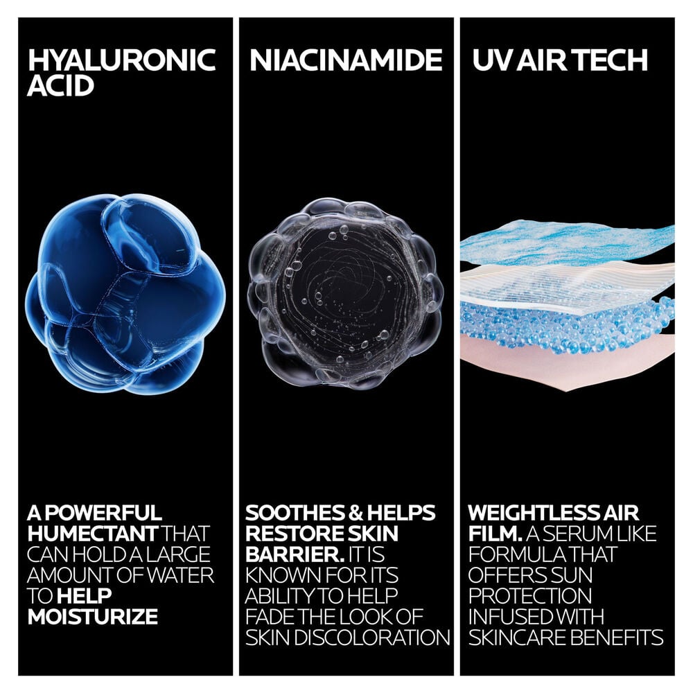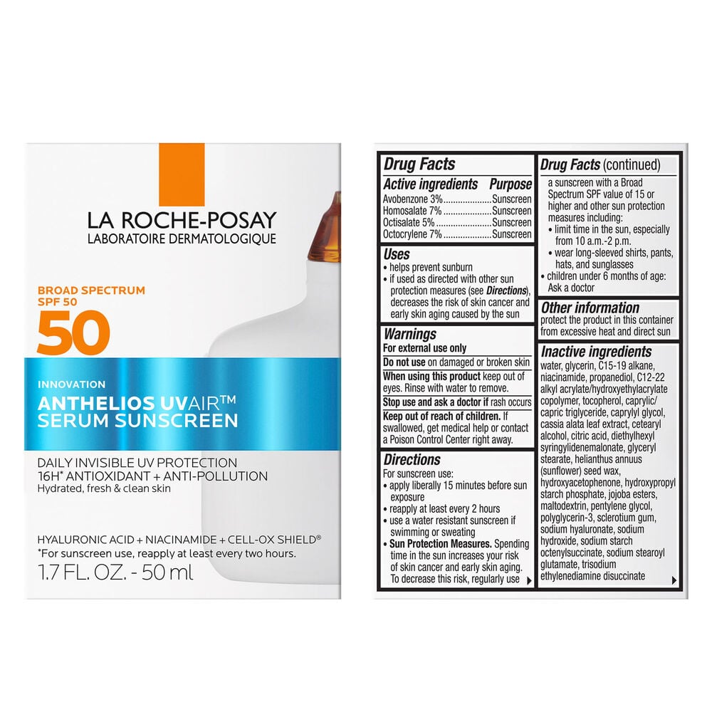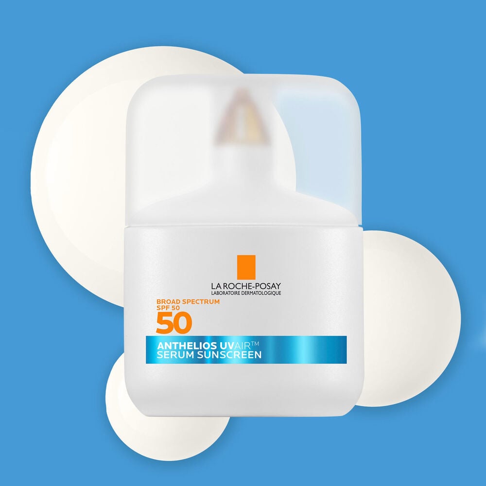 Anthelios UVAir? SPF 50 serum sunscreen supercharged with antioxidants provides multi-benefit UV protection in weightless light as air texture.