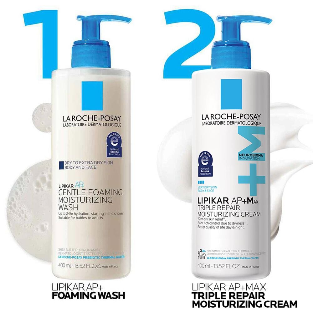 This triple repair moisturizing body cream (formerly Lipikar AP+M Balm) is clinically shown to alleviate extra dry skin and provides long lasting, 48-hour hydration. Formulated with Ceramides, Niacinamide and Shea butter, it is now also powered by Neurobioma?, the newest, exclusive La Roche-Posay ingredient designed to help reduce skin itching. Its triple action delivers 72-hour dry skin relief**, 24-hour itch control due to dryness***, and helps repair the skin barrier.