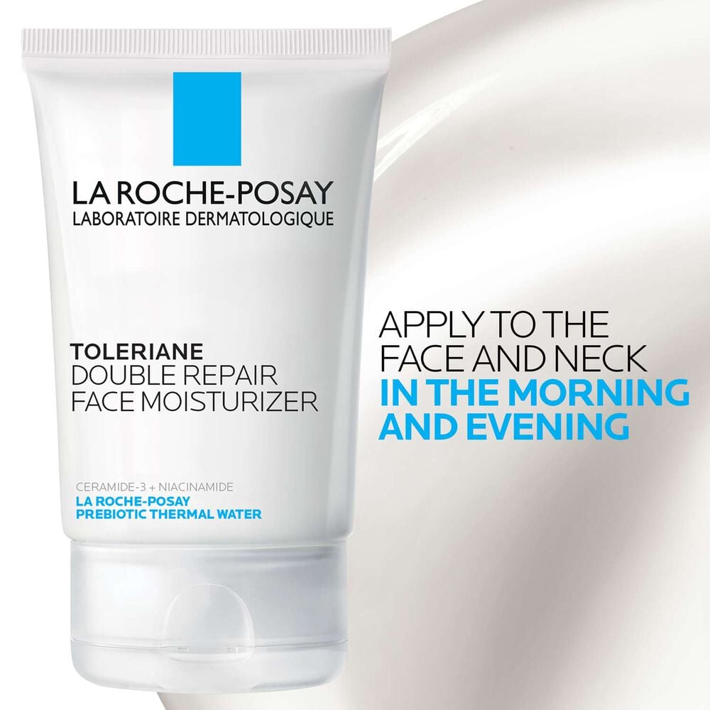Toleriane Double Repair Face Moisturizer is formulated with dermatologist-recommended ingredients including ceramide-3, niacinamide, glycerin and La Roche-Posay Prebiotic Thermal Water. Double action helps repair skin??s natural protective barrier after 1-hour and provide up to 48-hour hydration. Its lightweight cream texture easily absorbs into the skin to provide immediate comfort. Suitable for all skin types, including sensitive. This face moisturizer helps restore healthy-looking skin.