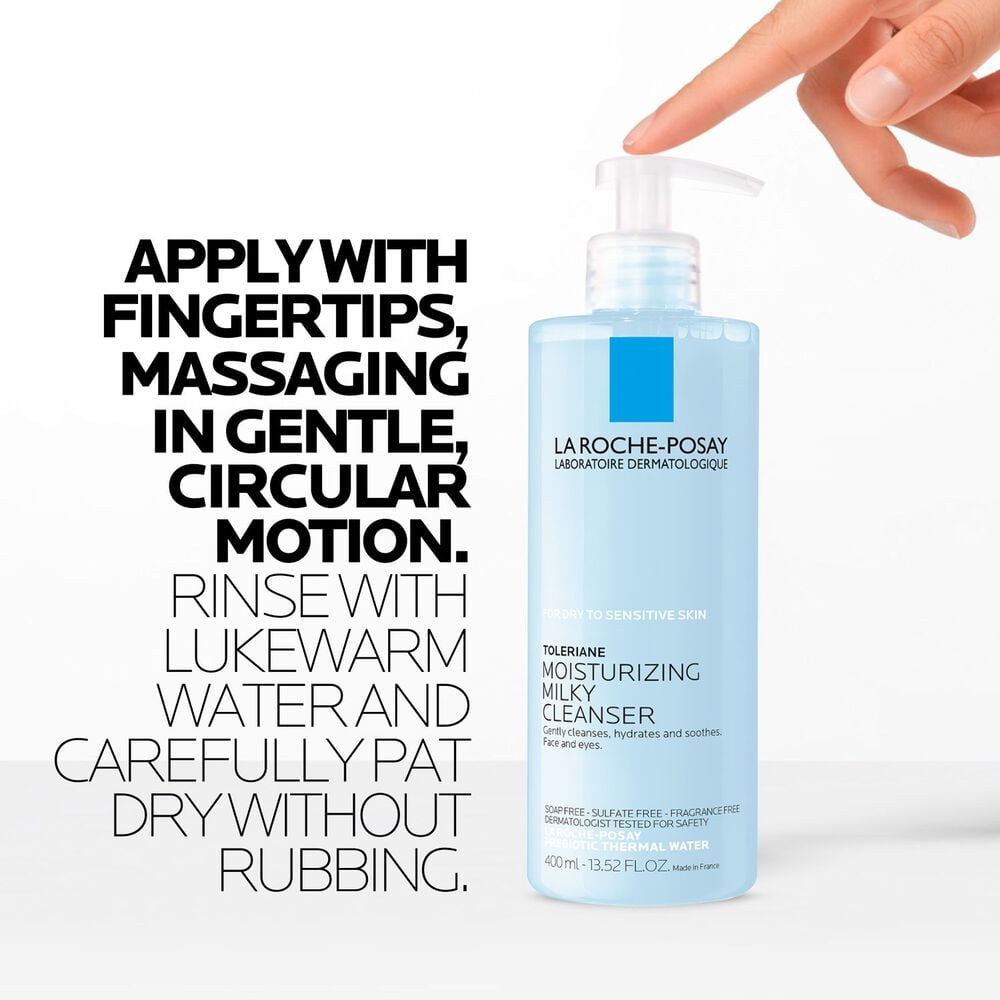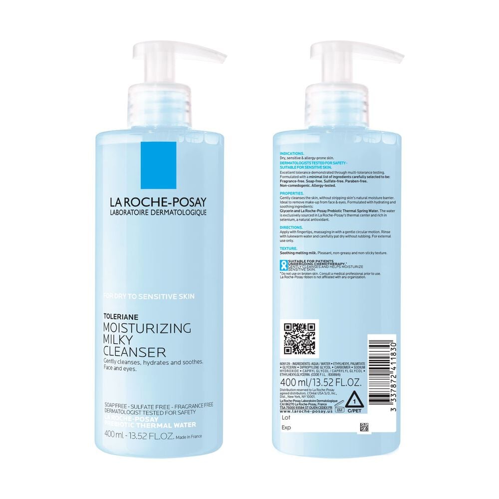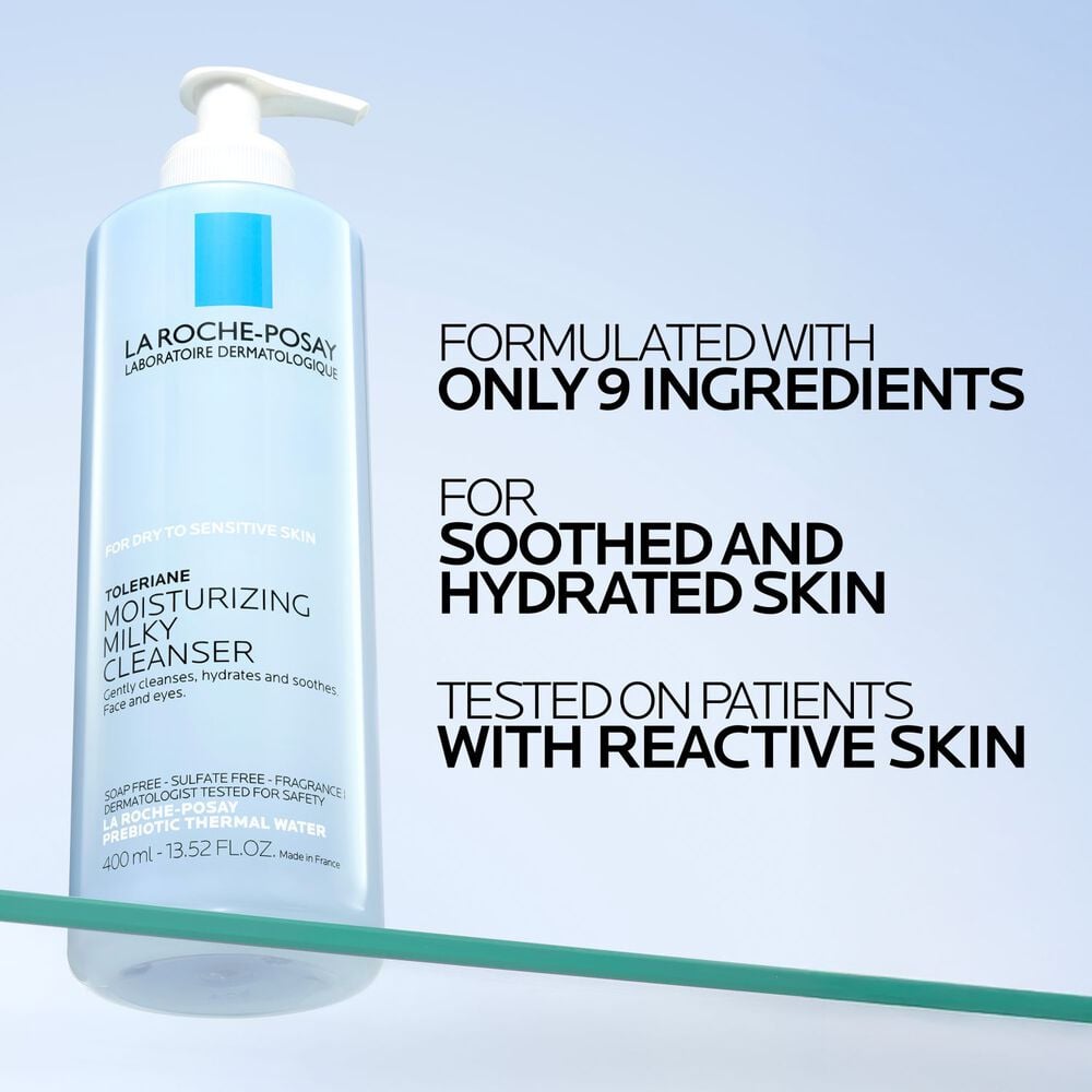 This soothing melting milky face wash gently cleanses the skin without stripping skin’s natural moisture barrier. Formulated with only ingredients for maximum comfort and efficacy, this daily facial cleanser is designed for dry, sensitive, and allergy-prone skin. With hydrating soothing ingredients, including glycerin and prebiotic thermal water, this cleanser is ideal for removing make-up from face and eyes.