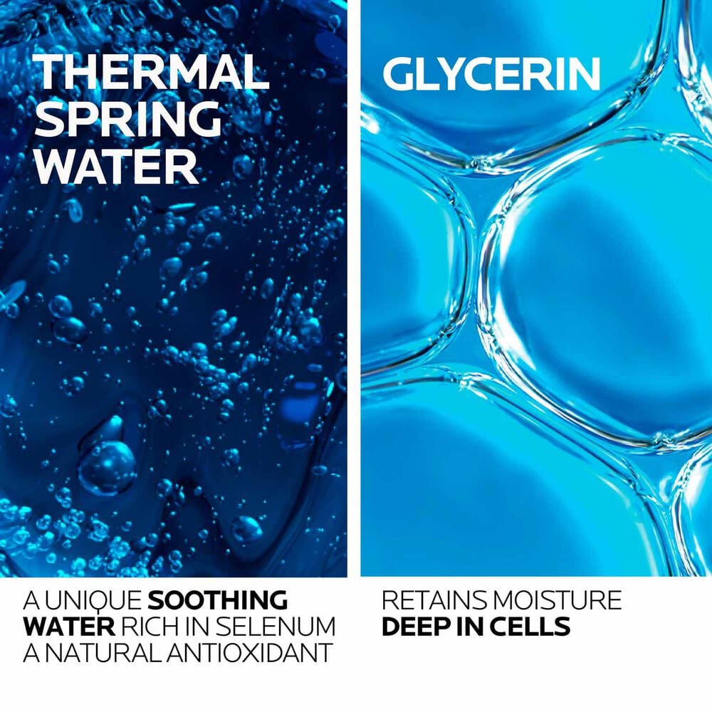 La Roche-Posay Thermal Spring Water: soothing water sourced in the town of La Roche-Posay in France and core ingredient in most of our products. It contains unique combination of minerals, trace elements, and high concentration of selenium, natural antioxidant.